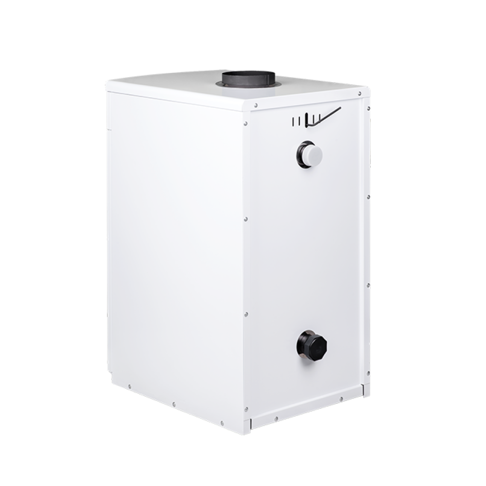• Простой монтаж - 4 патрубка теплоносителя дают возможность формирования двух независимых контуров отопления (80 кВт и 98 кВт)