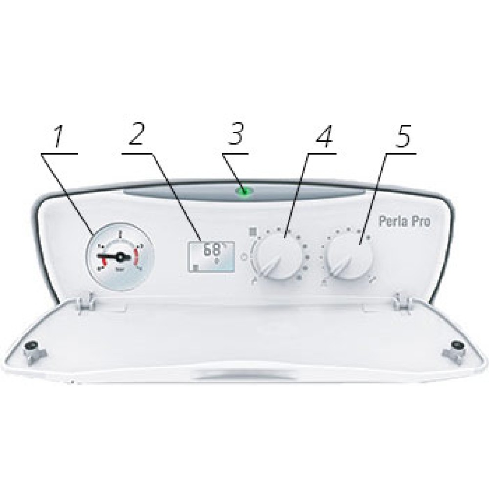 - Трехцветный ЖК-индикатор, видимый даже при закрытой панели, отображающий рабочий режим котла (включен, выключен, наличие неисправностей)