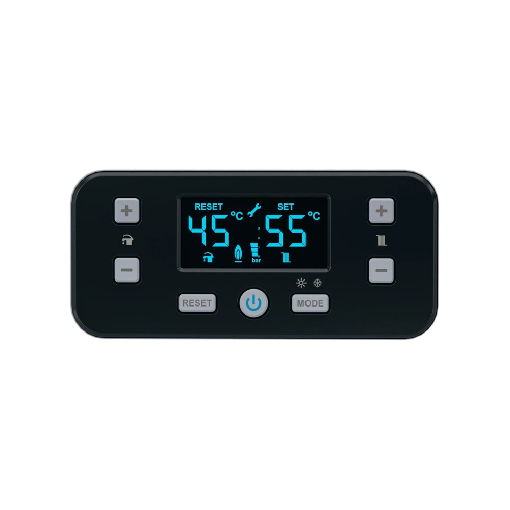 Отличительной особенностью котла является дисплей, на котором отображается полная информация о состоянии котла. Современная система автоматики поддерживает подключение датчика наружной температуры и режим «Теплый пол». Котел может быть как в монотермическом, так и в битермическом исполнении.