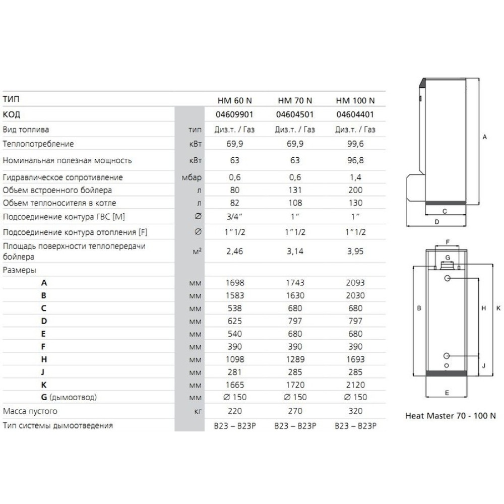 - Модели HEAT MASTER 60 N, HEAT MASTER 70 N, HEAT MASTER 100 N, HEAT MASTER 200 N поставляются без горелки