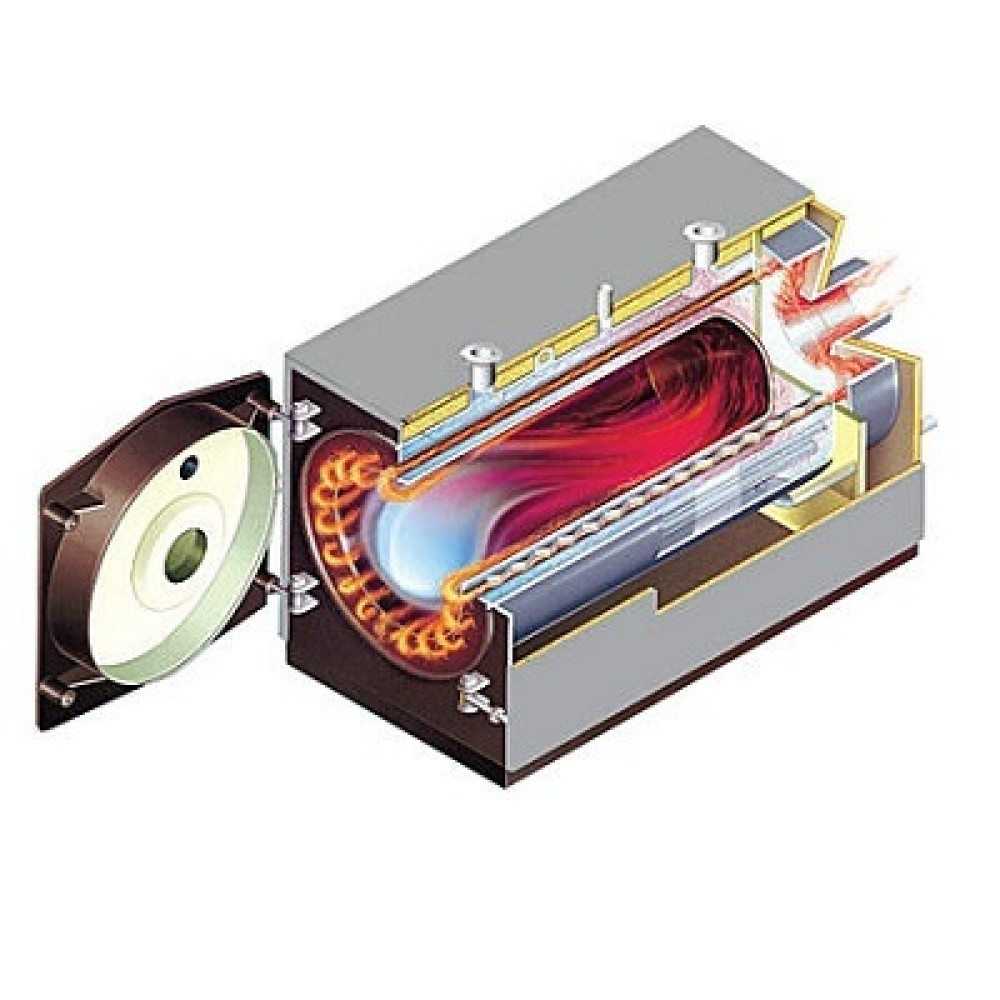 - Стальной котел с топкой под давлением, пригодный для установки дутьевых горелок, работающих на газовом или дизельном топливе