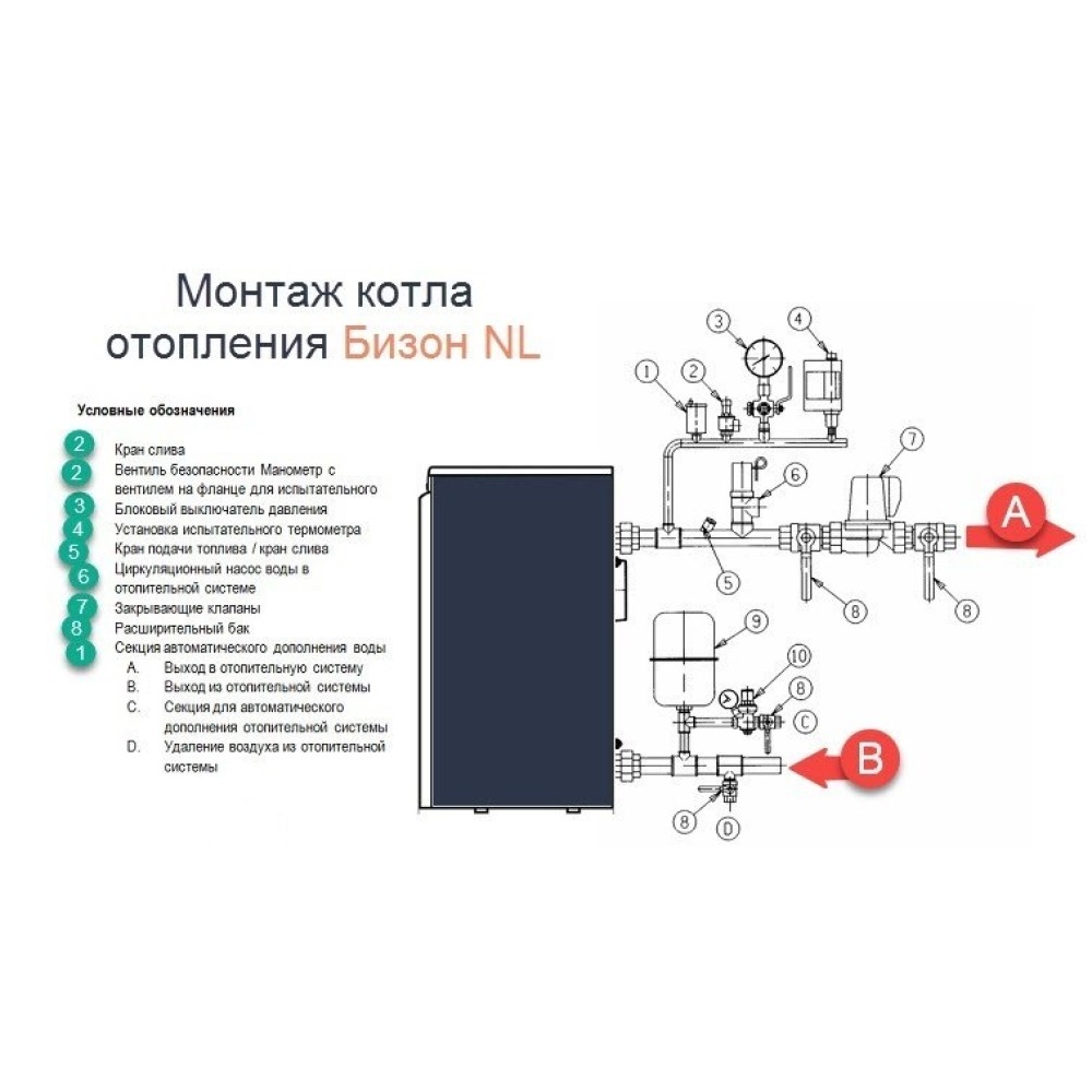 Горелка не входит в комплект котла. Приобретается отдельно, в зависимости от вида используемого топлива.