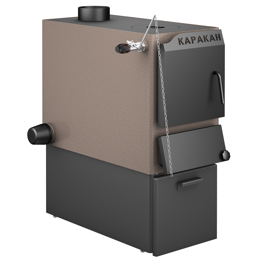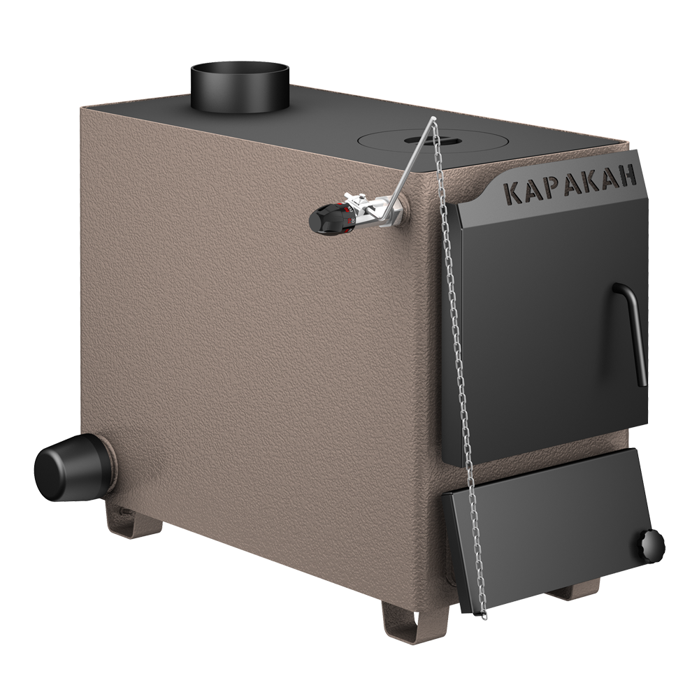 Котел Каракан - 12 ТПЭ3 предназначен для обогрева жилых и производственных объектов. Корпус котла сварной, из стали толщиной 3 мм. Длина используемых дров - до 60 см. Имеется варочная плита с одной конфоркой. Возможна установка автоматического регулятора тяги. Подключение подачи и обратки – универсальное (справа и слева). Предусмотрена возможность установки блока ТЭНов. Для управления ТЭНами предназачены пульты ПУЭ и терморегуляторы производства ГК СТЭН.