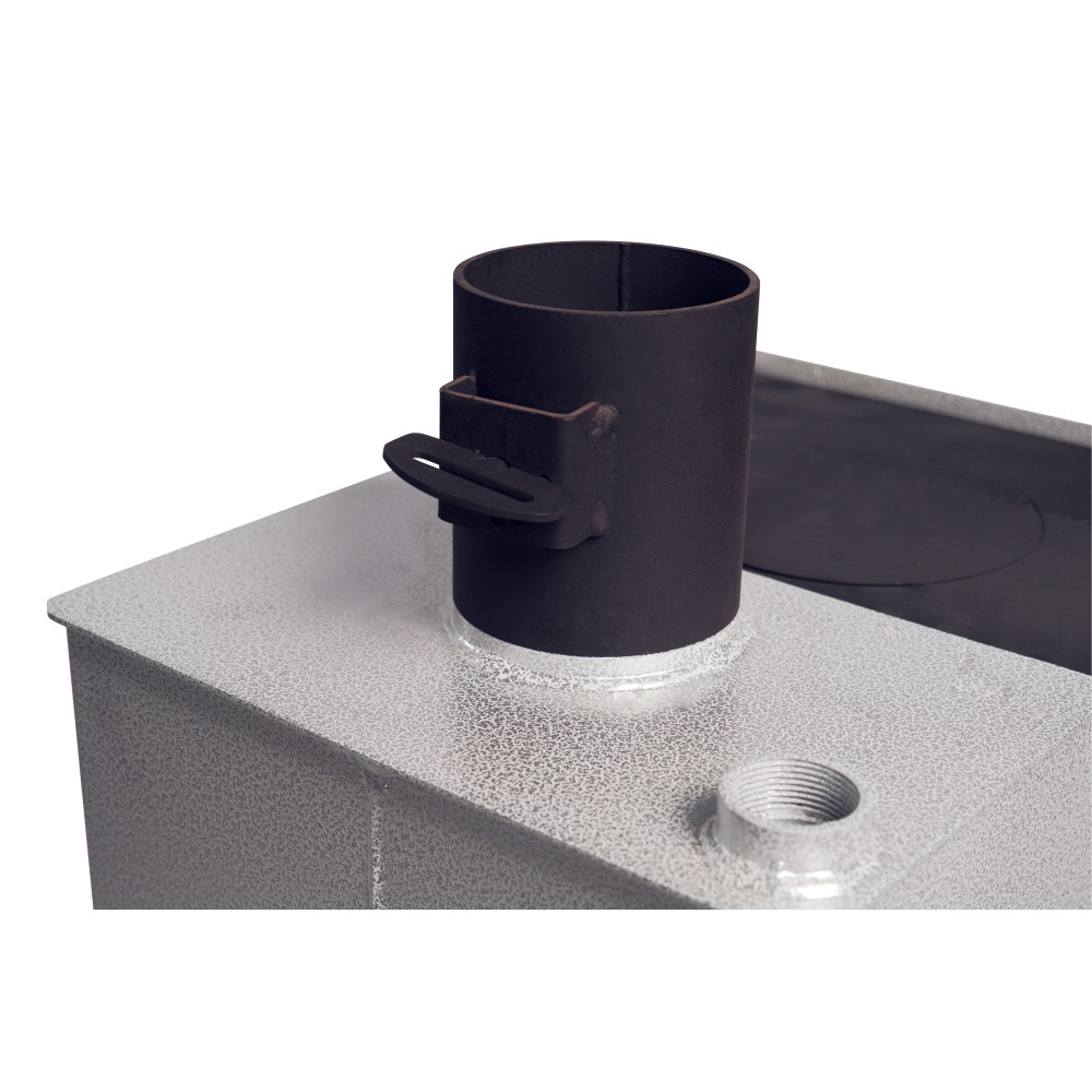 - Совместимость с любой системой дымохода. Прямоугольное сечение дымохода удобно как при встраивании котла в кирпичную трубу, так и при переходе на круглую трубу типа «сэндвич» с использованием переходников с шибером;