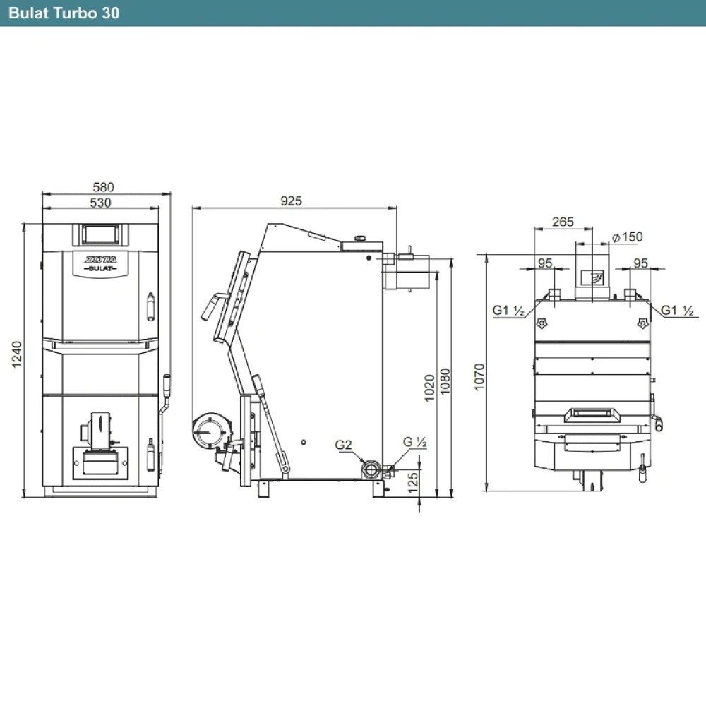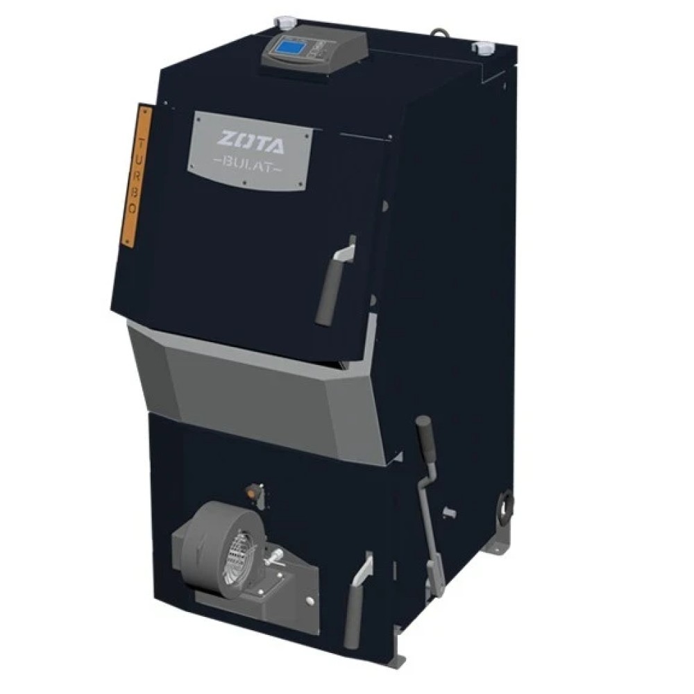 Твердотопливный полуавтоматический котел ZOTA Bulat Turbo 30 кВт с ручной загрузкой, для системы водяного отопления.
