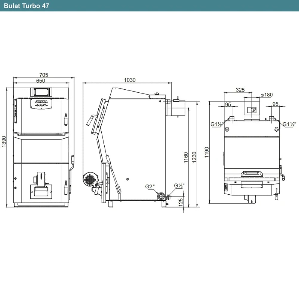 Твердотопливный полуавтоматический котел ZOTA Bulat Turbo 48 кВт с ручной загрузкой, для системы водяного отопления.