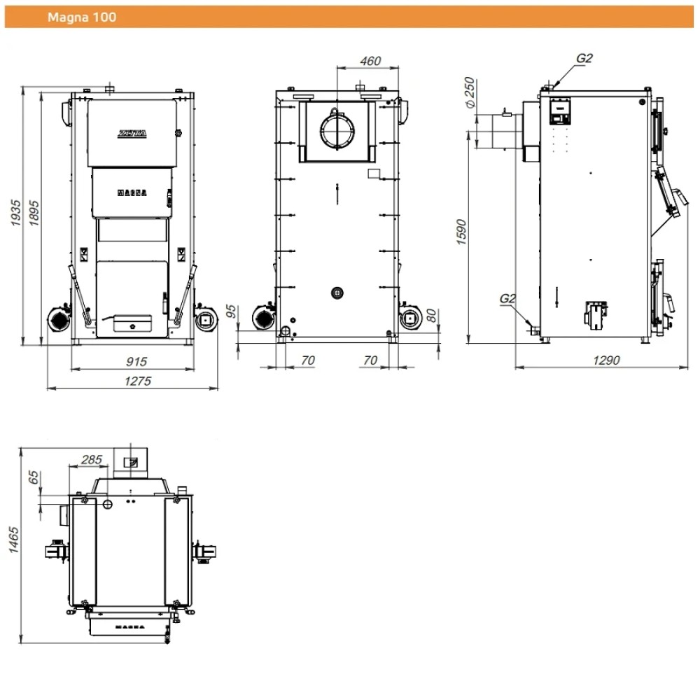 Полуавтоматический твердотопливный котел ZOTA Magna 100 кВт с ручной загрузкой, для системы водяного отопления.