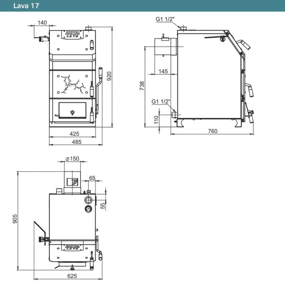 Технические характеристики Котел твердотопливный ZOTA Lava 17