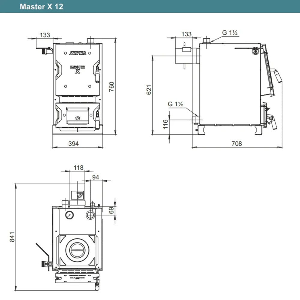 Технические характеристики Котел твердотопливный ZOTA Master-X 12П