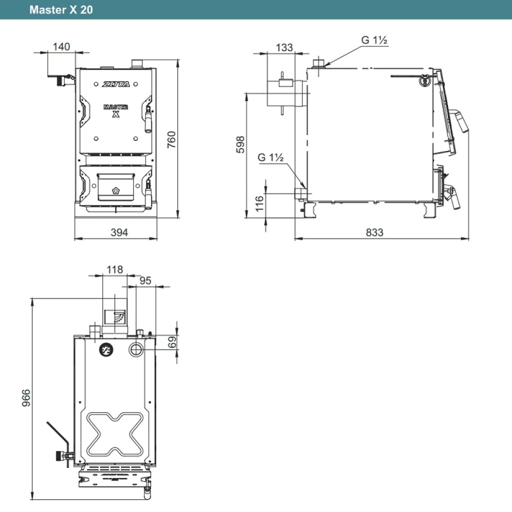 Технические характеристики Котел твердотопливный ZOTA Master-X 20