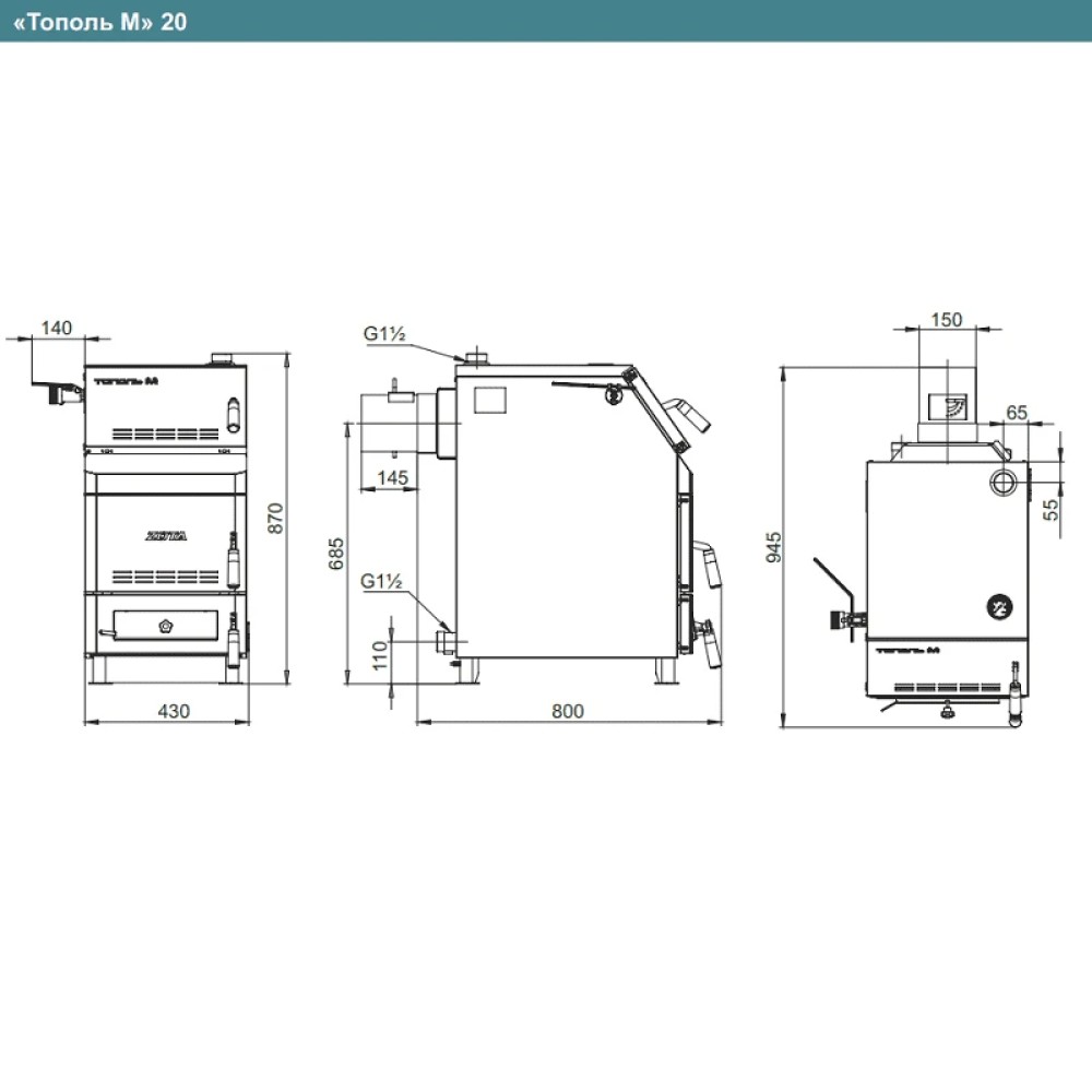 Технические характеристики Котел твердотопливный ZOTA Тополь-М 20