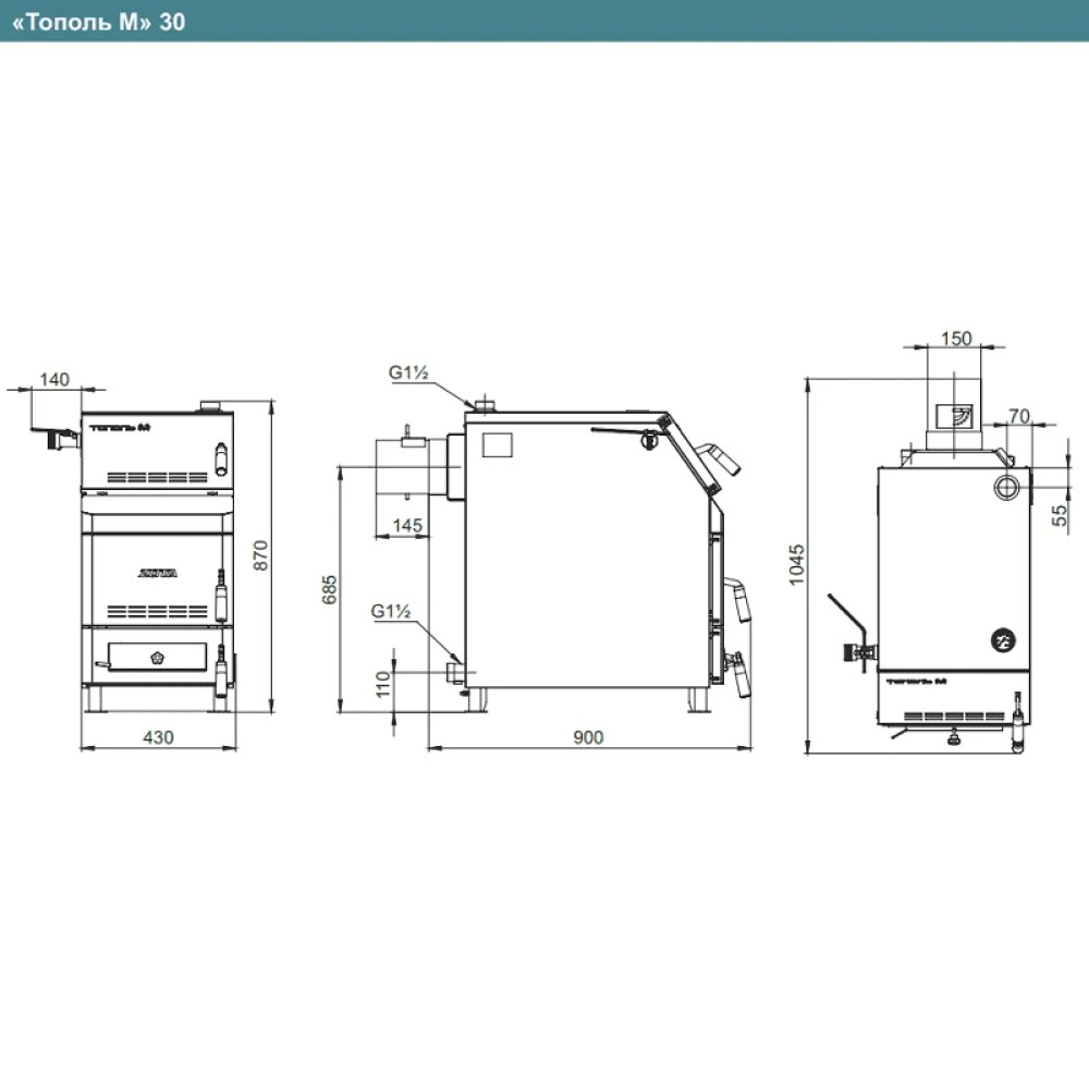 Технические характеристики Котел твердотопливный ZOTA Тополь-М 30