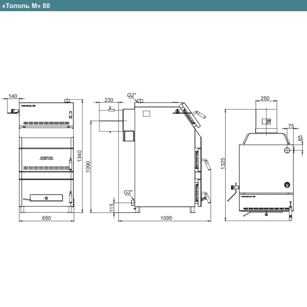 Технические характеристики Котел твердотопливный ZOTA Тополь-М 80