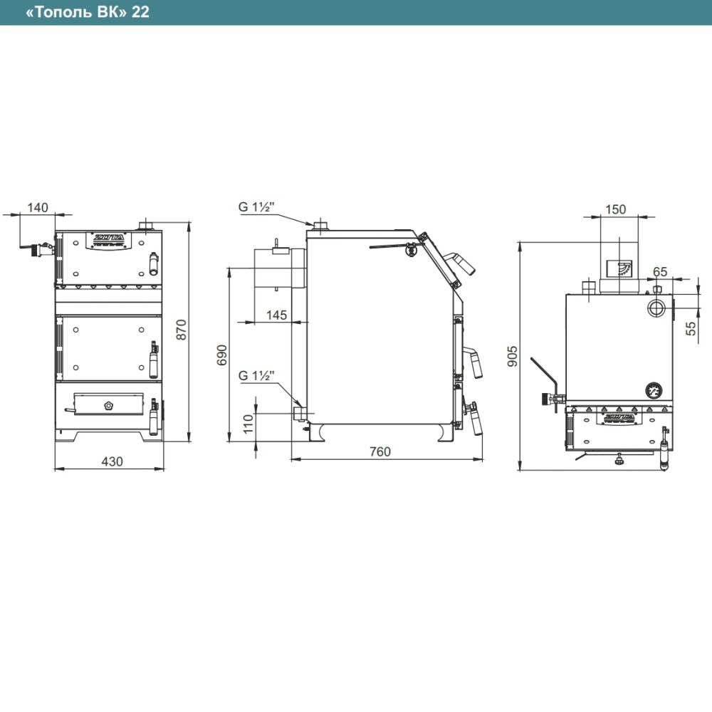 Котел твердотопливный ZOTA Тополь-ВК 22