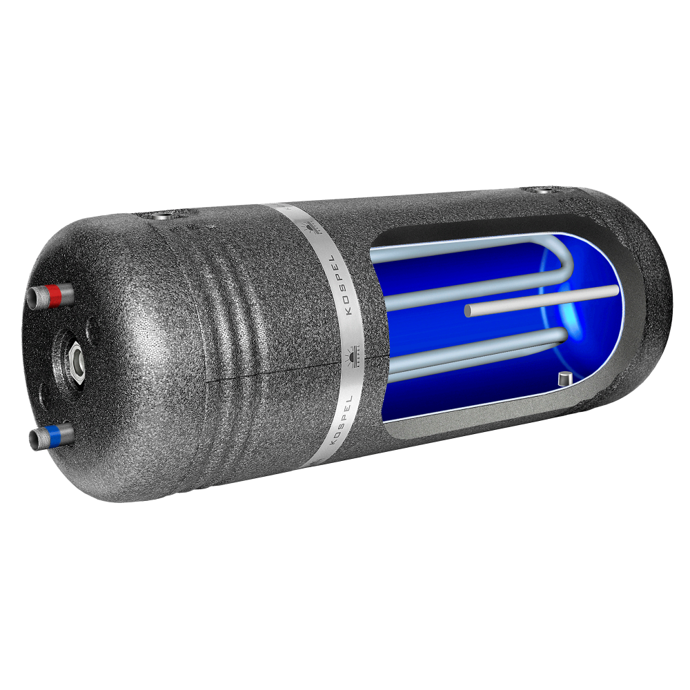 Горизонтальный теплообменник горячего водоснабжения с двойным змеевиком Kospel WW Termo HIT для нагрева и хранения бытовой воды. Идеально приспособлен для совместной работы с твердотопливными низкотемпературными котлами. Предназначен для эксплуатации в отопительных системах открытого типа