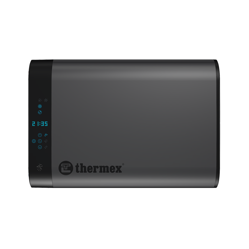 Современные функции и приятный интерфейс. На фронтальной стороне водонагревателя расположена универсальная панель управления – показания времени и температуры автоматические меняют расположение в зависимости от монтажа бака. Управление полностью электронное и интуитивно-понятное: индикации на панели показывают режим работы, температуру и возможность настройки до градуса, текущее время, работу режимов защиты. А благодаря технологии Wi-FI Motion функционал работы становится более широким. Через приложение Thermex Home пользователь может из любой точки мира настроить алгоритм работы по дням или часам, установить таймер, а также подключить к голосовому помощнику Алиса.