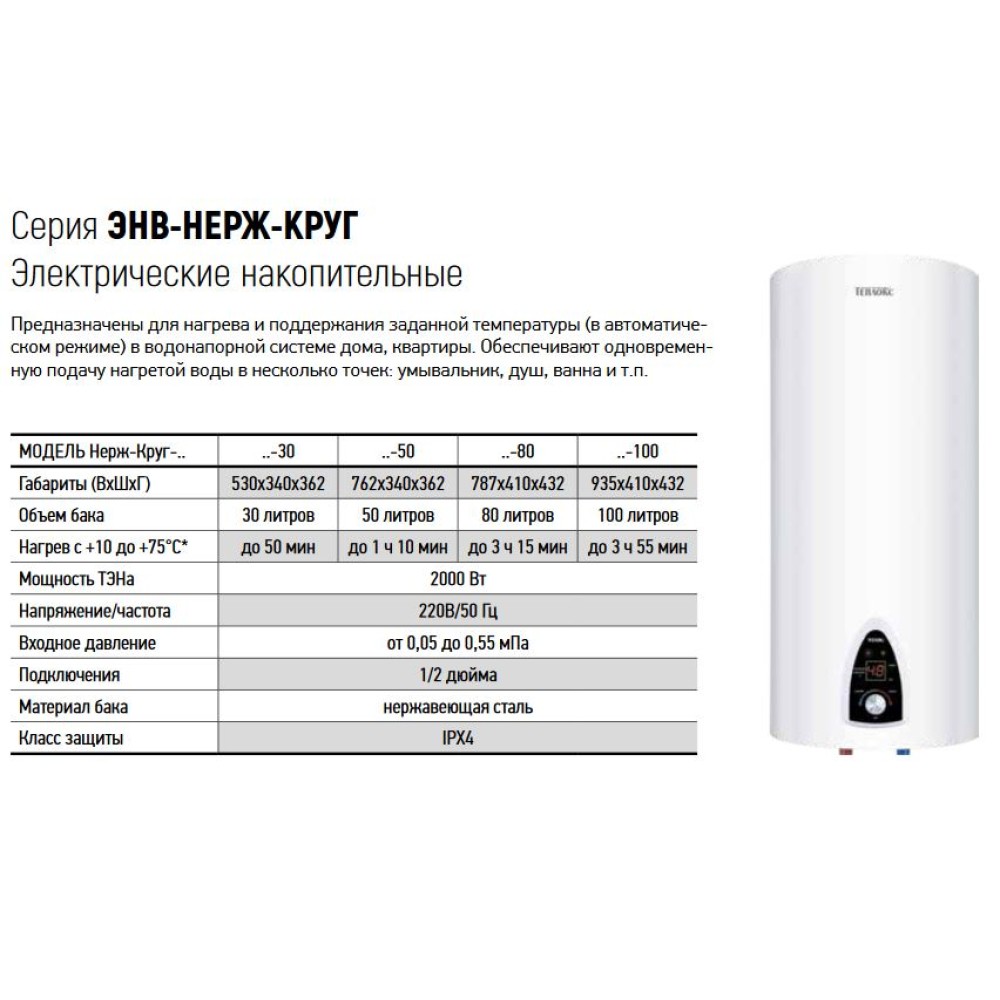 Электрический накопительный водонагреватель ТЕПЛОКС серии ЭНВ-НЕРЖ-КРУГ не предназначен для работы в непрерывном проточном режиме.