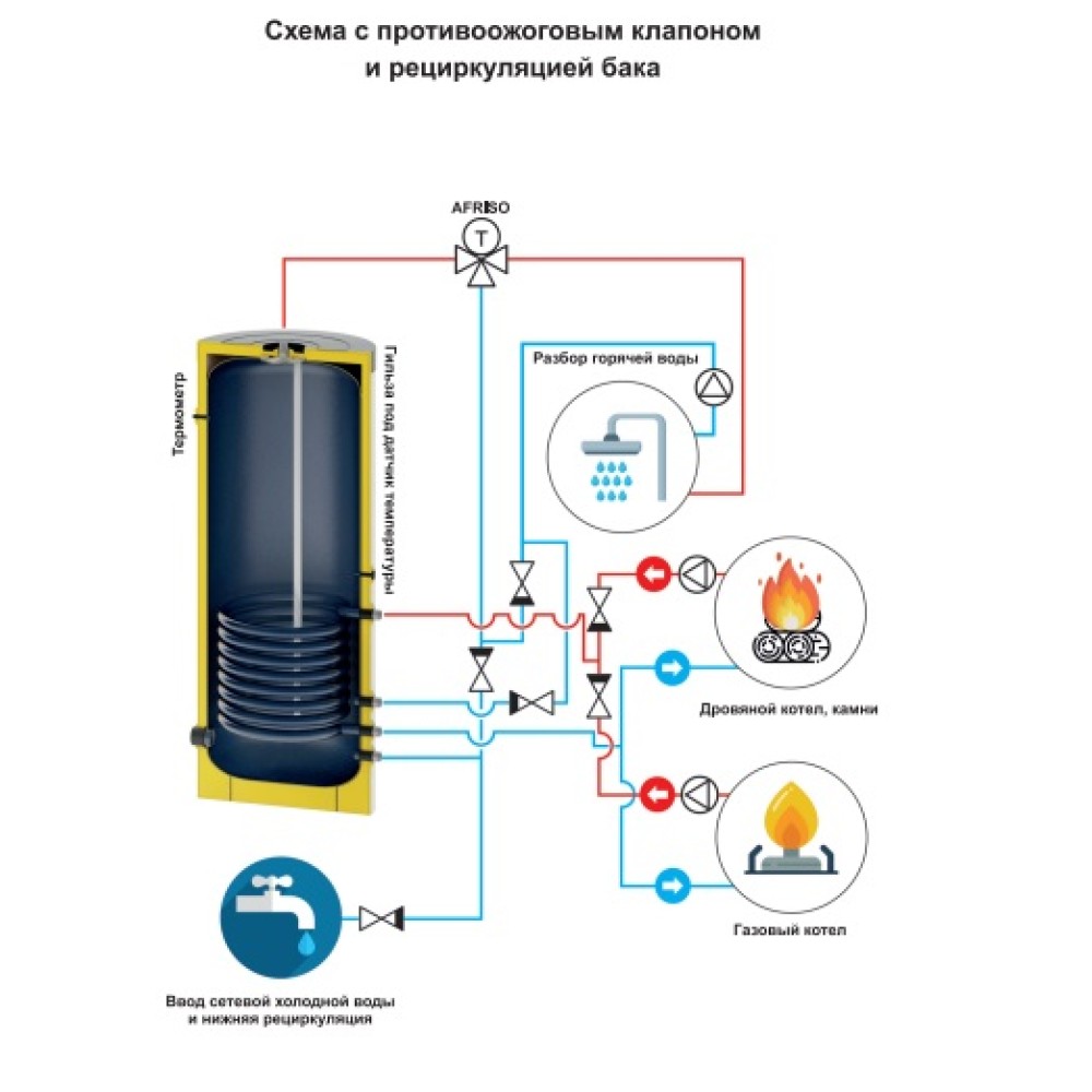 Бойлеры косвенного нагрева STEELSUN номинальным объемом от 150 до 1000 литров. Материал бака - углеродистая сталь с эмалированным покрытием. Бак предназначен для аккумулирования горячей воды от различных источников тепла. Бойлер STEELSUN улучшает гибкость системы ГВС, позволяя Вам аккумулировать постоянный объем горячей воды, использовать рециркуляцию ГВС для повышения комфорта пользования. А возможность подключения электрического нагревателя в отверстие с внутренней резьбой 2'' (для баков 750 и 1000 литров) или 1 1/2" (для баков до 500 литров включительно) в нижней части бака, делает бак более универсальным. 1.2. Конструктивные особенности. Для типов бойлеров доступны два типа изоляции: • Бак 150 литров-500 литров включительно, несъемная жесткая пенополиуретановая изоляция средней толщиной - 40 мм (коэффициент теплопроводности 0,028 Вт/м*С). • Бак 750 литров- 2000 литров съемная мягкая полиэфирная изоляция толщиной 65-70 мм, выполненная по технологии NOFIRE с классом огнестойкости B-s2d0 в соответствии с Европейскими требованиями EN 13501 – (коэффициент теплопроводности материала - 0,031 Вт/м*С). Бойлер STEELSUN рассчитан на рабочую температуру с использованием воды в диапазоне от +2 до +80 градусов по Цельсию. Все модели данной серии обладают следующими конструктивными особенностями: а). Нижняя опора бойлера выполнена по принципу кольцевой опоры, позволяющей равномерно распределять вес на поверхность пола и обеспечить устойчивость. б). Все бойлеры оснащены подводящими и отводящими штуцерами, выполненными из толстостенной трубы. в). С наружной стороны бойлеры в стандартном исполнении объемом до 500 л включительно, защищены пластиковой обшивкой.