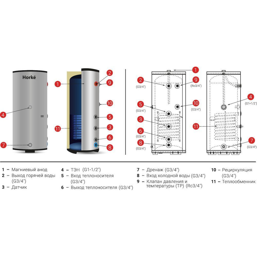 Водонагреватели Horke предназначены для экономичного нагревания холодной воды для технических и хозяйственных нужд. Номинальная продуктивность этих водонагревателей вполне достаточна для обеспечения горячей водой жилых и производственных помещений, ресторанов и др. Для получения горячей воды используется системы отопления (нагревание воды происходит благодаря циркуляции теплоносителя в теплообменнике)