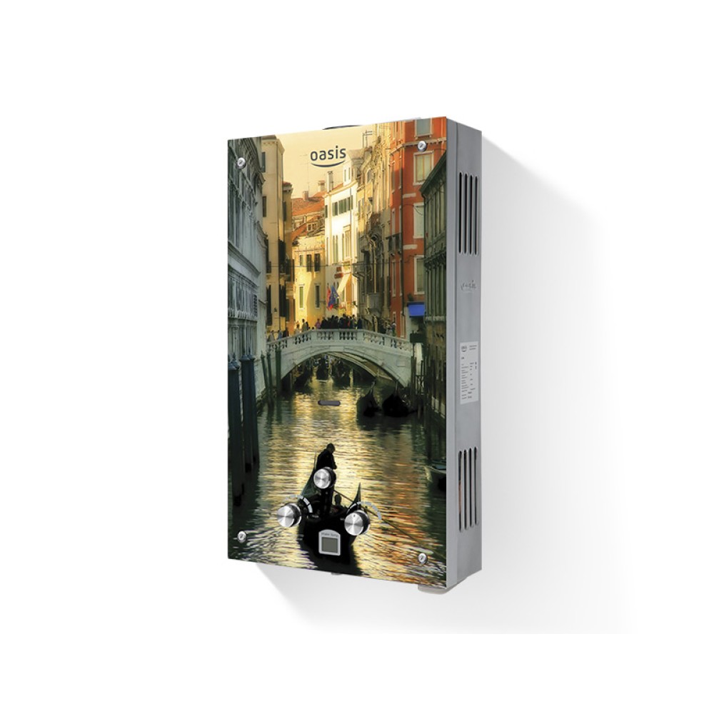 Газовый проточный водонагреватель «Oasis» служит для горячего водоснабжения. Принцип его работы достаточно прост: вода проходит через теплообменник прибора и моментально нагревается от сгорающего газа, поступая к потребителю уже горячей. «Oasis» подходит для любых квартир и частных домов, оборудованных дымоходом. Автоматический розжиг от батареек помогает избавиться от неудобств при неожиданном отключении электричества. Работа прибора осуществляется на природном газе. Отсутствие постоянно горящего запальника и специальный переключатель «Зима-лето» позволяют экономить около 70 м3 газа в год.