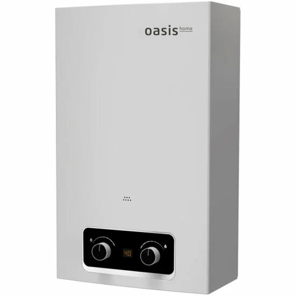Газовый проточный водонагреватель Oasis Home предназначен для мгновенного нагрева воды. Разработан для использования в квартирах, загородных домах и дачах с учетом специфики и снабжения газом и водой в России, что, в свою очередь позволяет колонке стабильно работать, даже при низком давлении воды в 0,03 МПа. Принцип его работы достаточно прост: вода проходит через теплообменник прибора и моментально нагревается от сгорающего газа, поступая к потребителю уже горячей.