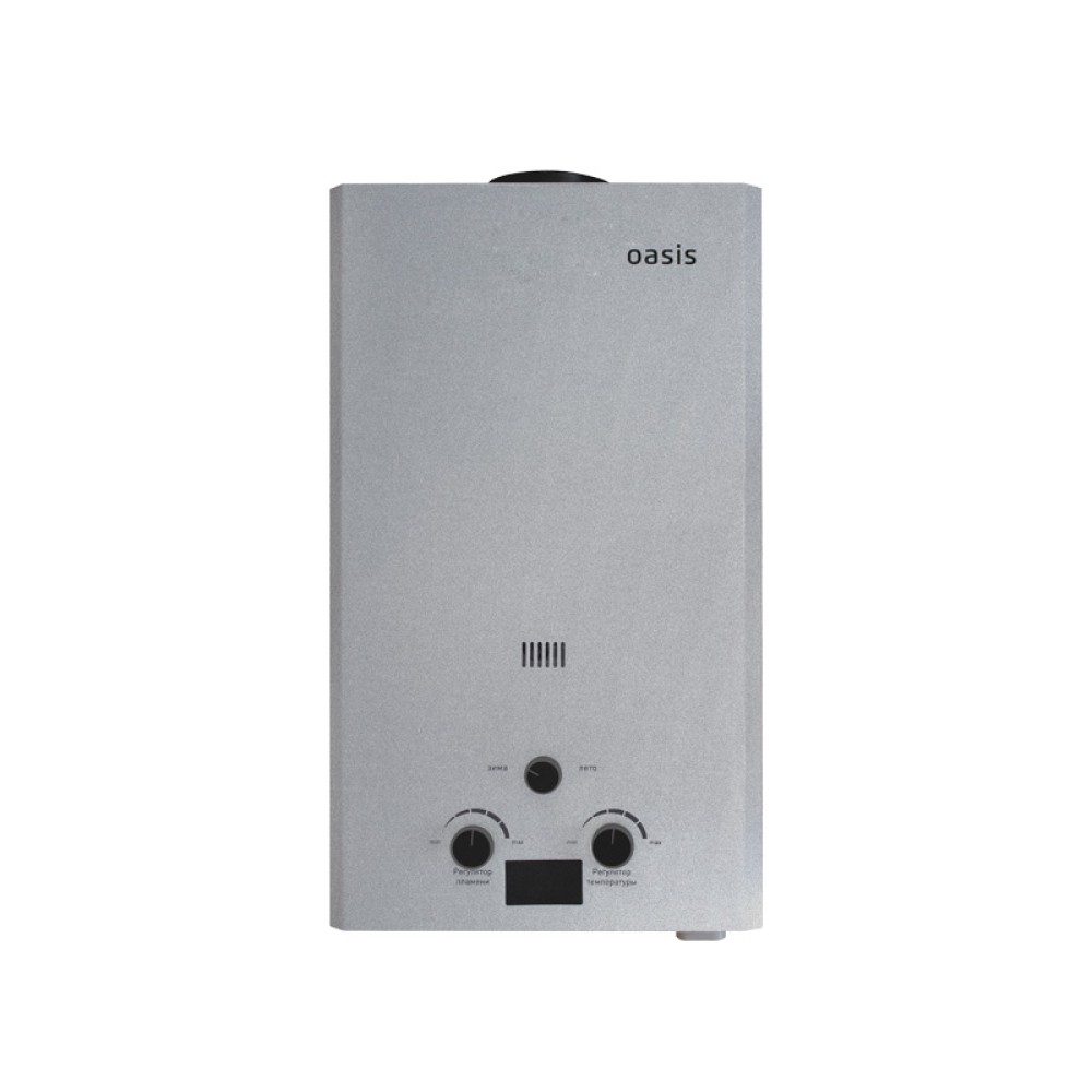 Газовый проточный водонагреватель «Oasis» служит для горячего водоснабжения. Принцип его работы достаточно прост: вода проходит через теплообменник прибора и моментально нагревается от сгорающего газа, поступая к потребителю уже горячей. «Oasis» подходит для любых квартир и частных домов, оборудованных дымоходом. Автоматический розжиг от батареек помогает избавиться от неудобств при неожиданном отключении электричества. Работа прибора осуществляется на природном газе. Отсутствие постоянно горящего запальника и специальный переключатель «Зима-лето» позволяют экономить около 70 м3 газа в год.