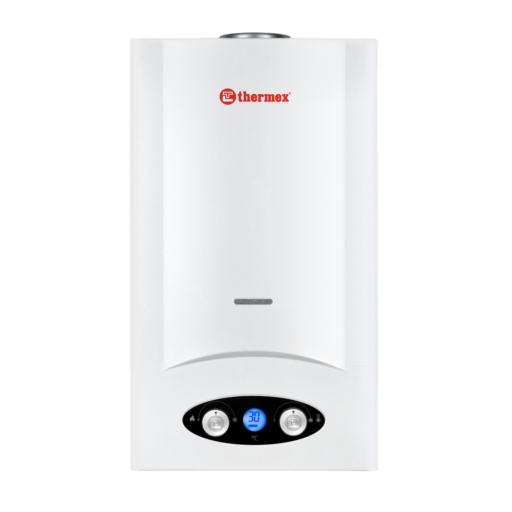 - Удобное управление. На фронтальной стороне Thermex Grand Eco расположены регуляторы протока и уровня газа, которыми можно настроить комфортную температуру воды. Кроме того, на панели предусмотрен дисплей - здесь отображается текущая температура воды и уровень заряда батарейки, что упрощает ее своевременную замену;