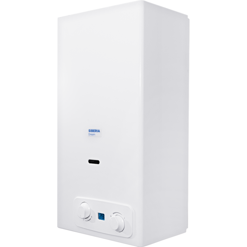 Siberia Dream 11i с электророзжигом и дисплеем оснащена теплообменником из высококачественной меди, а сопла газовой горелки сделаны из нержавеющей стали. Водогрейные газовые аппараты снабжены горелкой с плавной модуляцией мощности, позволяющей автоматически поддерживать заданную пользователем температуру воды. Водонагреватель Siberia Dream 11i имеет датчик тяги, контроля пламени и температуры. На корпусе водонагревателя имеются два переключателя для регулировки мощности нагрева и протока воды, колонка способны работать даже при низком давлении воды. Розжиг осуществляется с помощью от батареек и при необходимости может быть подключен к электросети через дополнительный адаптер. Автоподжиг включает водонагреватель сразу, как только открывается кран с горячей водой. Диаметр требуемый дымохода составляет 110 мм, патрубков для подключения воды равен 1/2" (15 мм). На дисплее отображается текущая температура используемой воды.