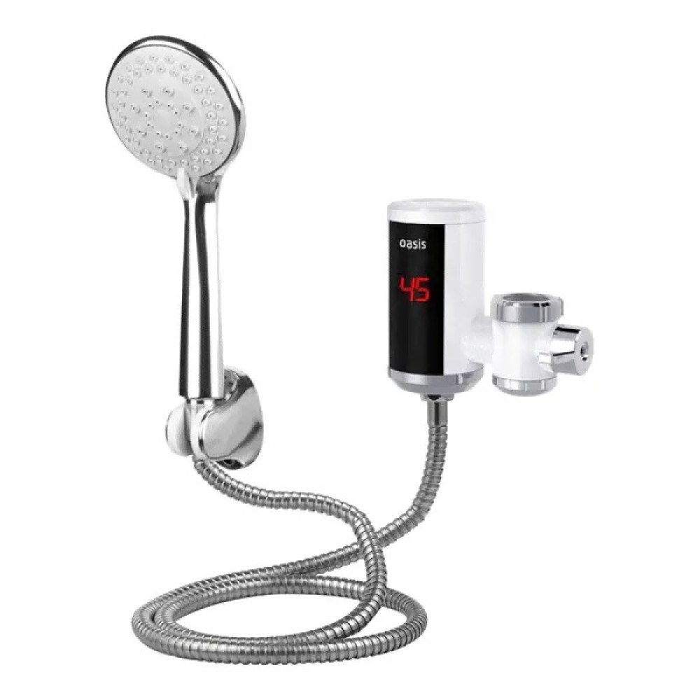 Электрический проточный водонагреватель Oasis NW - отличное решение, если нет возможности провести горячую воду или поставить полноразмерный водонагреватель. Корпус из высокопрочного пластика устойчив к коррозии и имеет эстетичный внешний вид. Простота и надёжность. В зависимости от силы потока и температуры входящей воды, на выходе можно получить нагрев до 60°С. Водонагреватель очень прост в монтаже - он монтируется на уже установленный смеситель с помощью переходника, который идёт в комплекте. Встроенная душевая лейка позволяет использовать прибор в ванной комнате. Дисплей показывает температуру воды. Электрические проточные водонагреватели Oasis - комфорт и надёжность в одном устройстве.