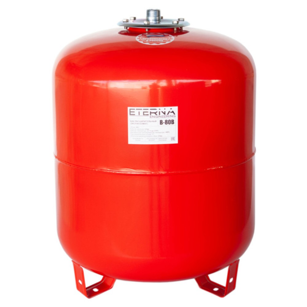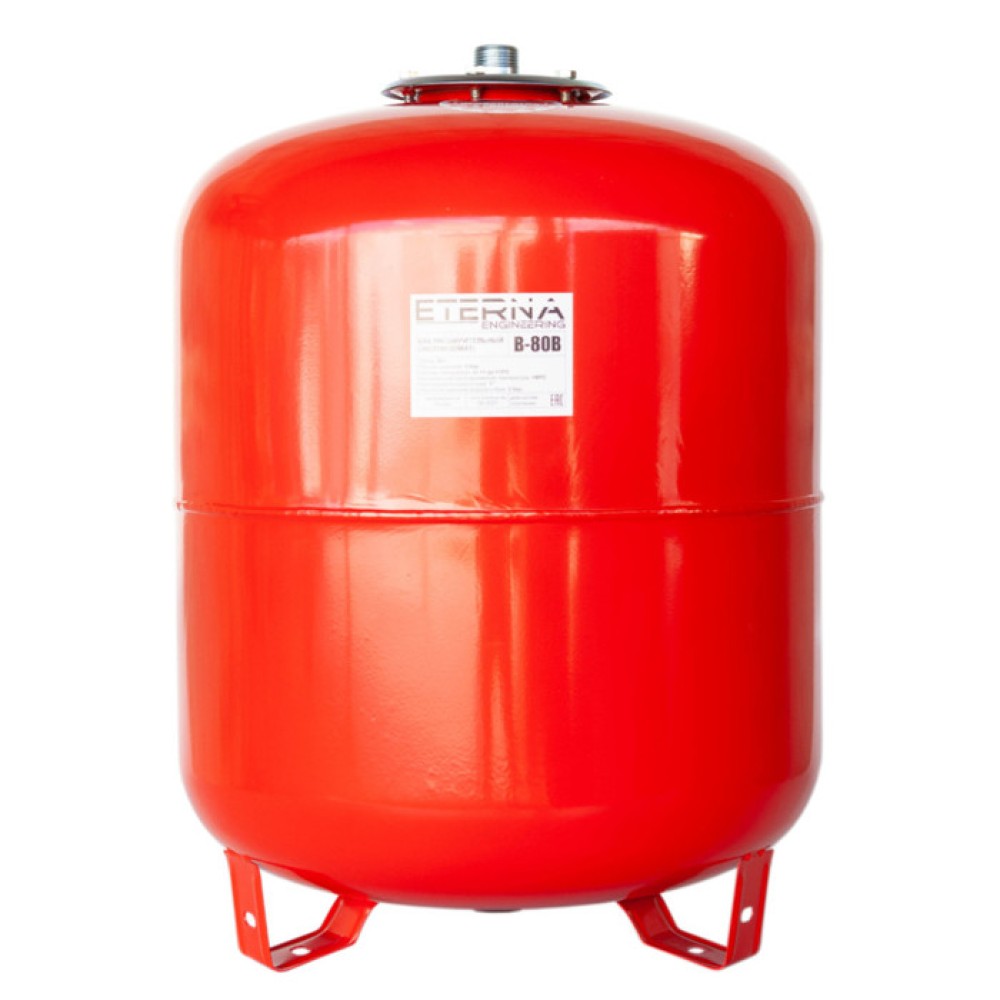 Расширительный бак ETERNA (ЭТЕРНА) В-80В характеризуется прочной конструкцией и выполнен из углеродистой стали. Важную роль в защите от гидроударов играет специальная расширяемая мембрана, которая изготавливается из белой пищевой резины. Устройство оснащено устойчивыми опорами, присоединительный штуцер расположен сверху.