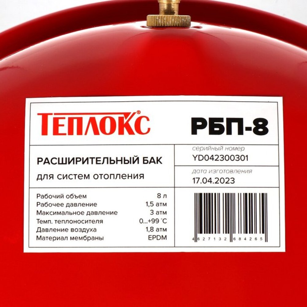 Расширительный бак Теплокс РБП-8 представляет собой специальное устройство, которое используется в системах отопления для компенсации изменений объема теплоносителя, вызванных его нагревом или охлаждением. Расширительный бак изготовлен из качественной нержавеющей стали, что обеспечивает его прочность, устойчивость и долговечность. Материал также устойчив к высоким температурам и коррозии.