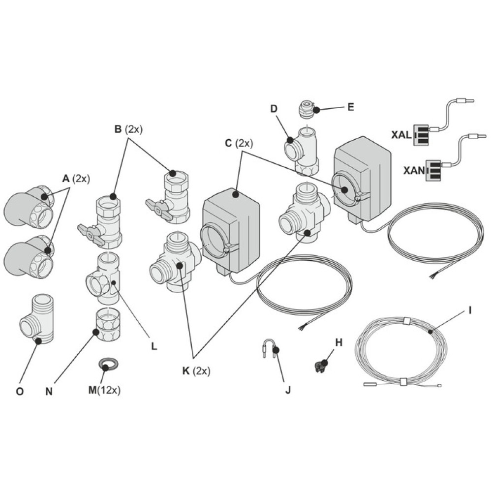 - Переключающий клапан – 2шт. (K)