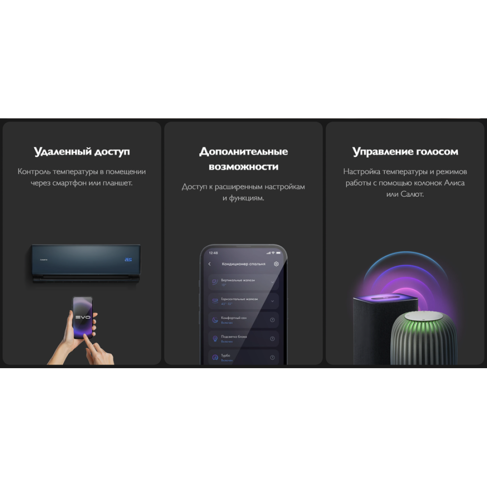 - Управляется через приложение evo