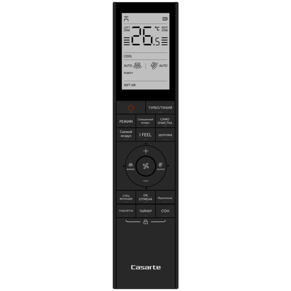 - Пульт обладает возможностью настройки таймера на включение/выключение и оснащен датчиком I-Feel